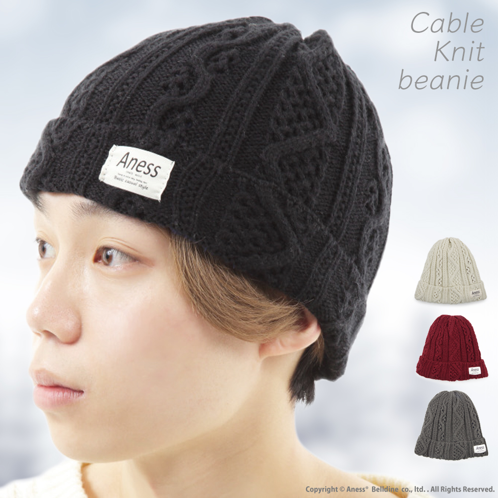 Aness ケーブル編み ニット帽 裏ボア p510
